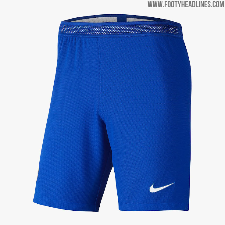 Blau / weiße Hosen und weiße Stutzen mit weißen und roten Details komplettieren das Chelsea 2019-2020 Trikot. Alternative blaue Stutzen werden ebenfalls erhältlich sein.