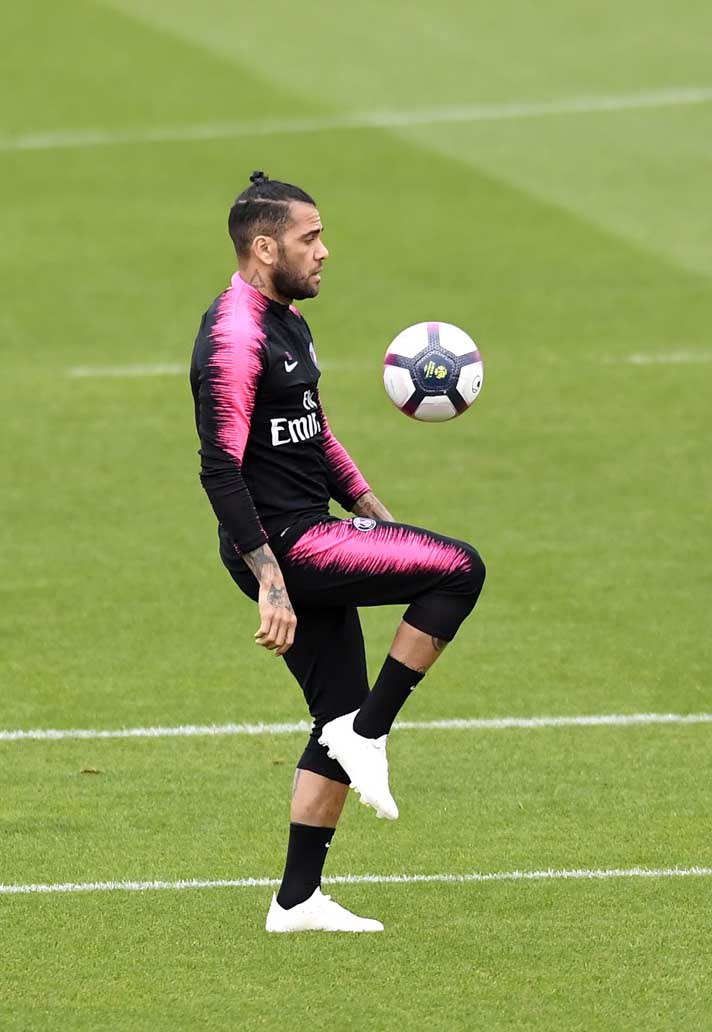 Der brasilianische Paris-Saint-Germain-Rechtsverteidiger Dani Alves kehrte nach einer langen Verletzung in Adidas-Fußballschuhen anstelle seiner üblichen Wahl, dem Nike Mercurial Vapor 360, ins Training zurück.