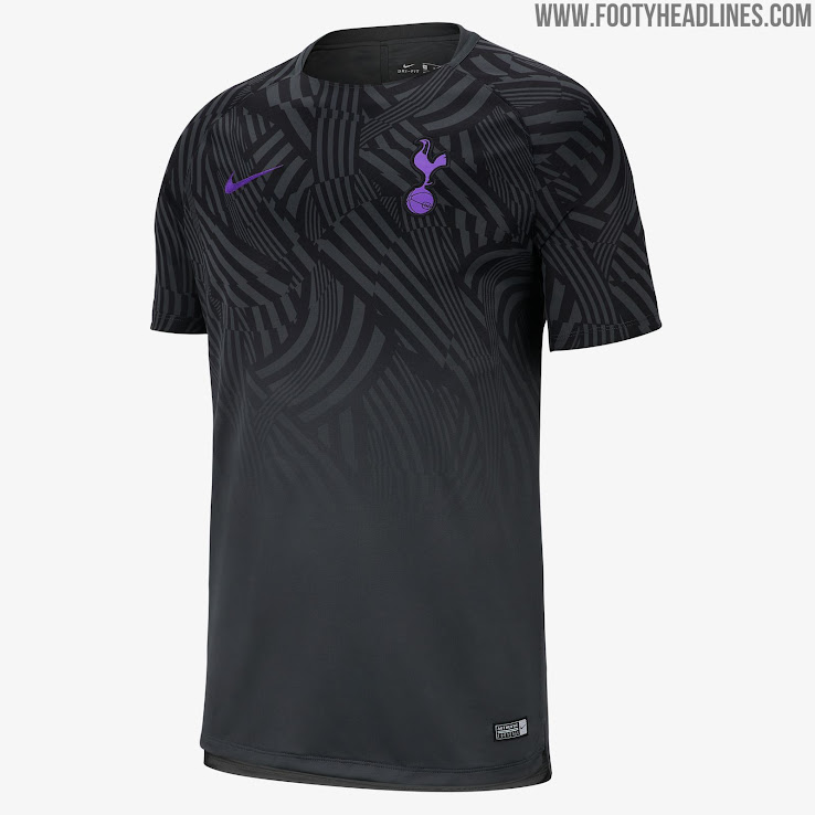 Basierend auf der gleichen Vorlage und mit der gleichen Grafik wie das aktuelle, tauscht das Tottenham 2019 Pre-Match-Shirt hellblau und marineblau gegen schwarz und lila und kreiert so einen neuen und möglicherweise noch atemberaubenderen Look.