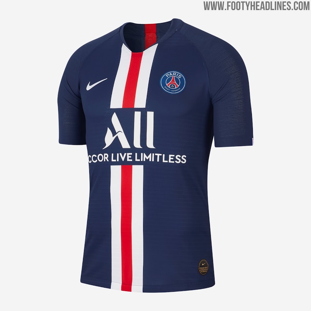 In der Mitte des Streifens wird Platz für den "All - Accor Live Limitless"-Sponsorendruck auf der Vorderseite des PSG 2019-2020 Trikots gelassen. Das Sponsorenlogo ist größentechnisch etwas überdimensioniert.