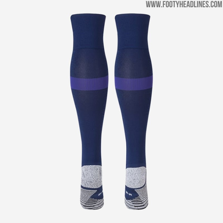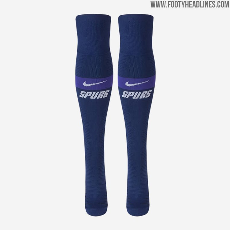 Dunkelblaue Hosen und Stutzen komplettieren das Tottenham-Auswärtstrikot für 19/20.