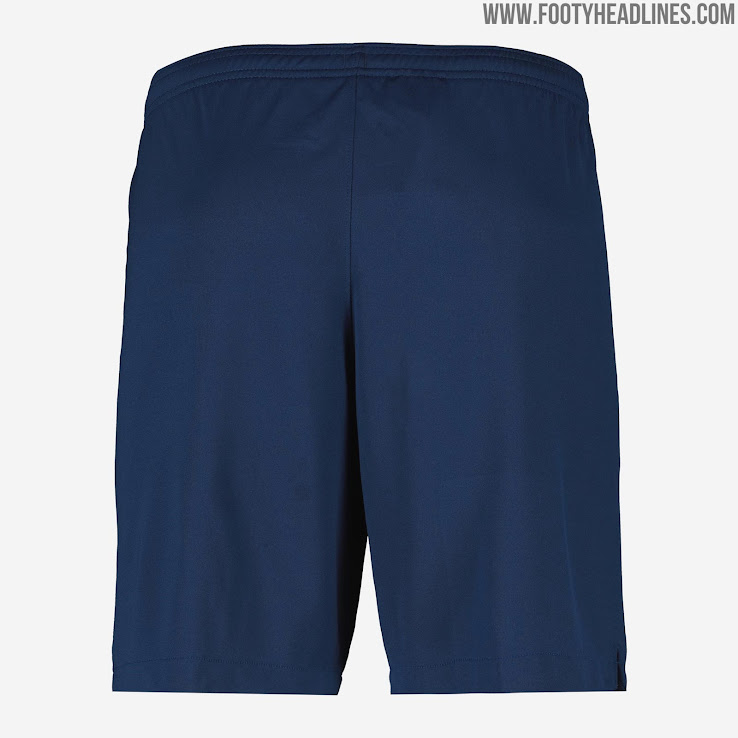 Blaue Hosen und hellblaue Stutzen runden den Look des neuen Atletico Madrid 2019-2020 Trikots von Nike ab.