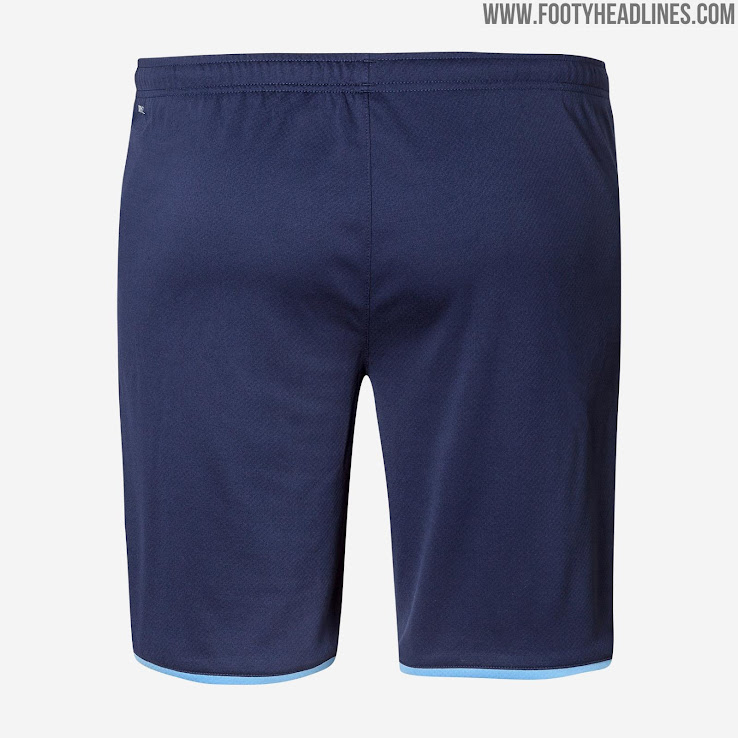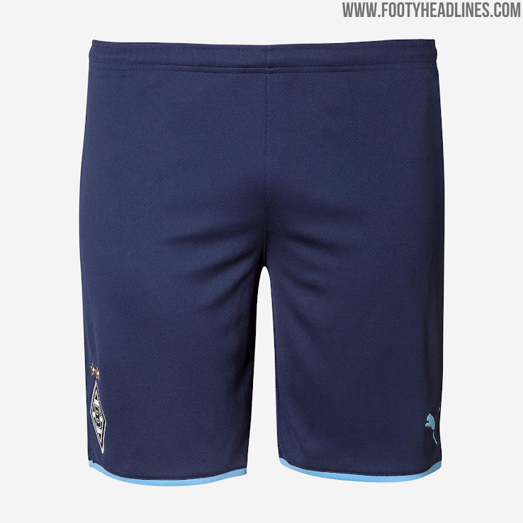 Die Hose des Borussia Mönchengladbach 19-20 Trikots ist dunkelblau und die Stutzen hellblau.