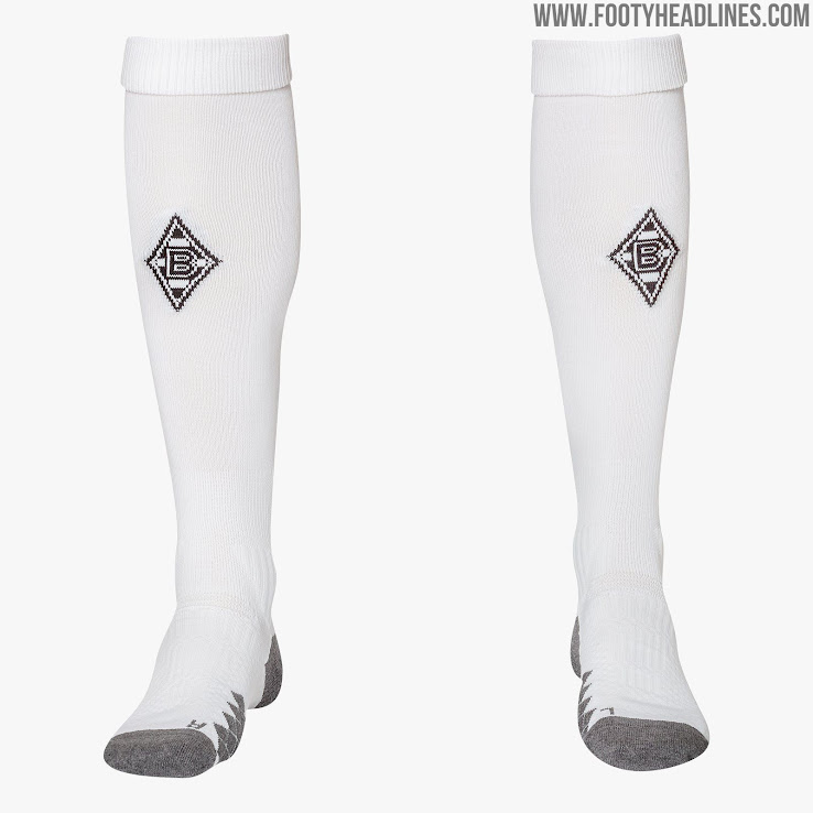 Weiße Hosen und Stutzen komplettieren das Borussia Mönchengladbach 2019-2020 Trikot. Die anfangs gemunkelten gelben Stutzen wurden vor Release scheinbar verworfen.