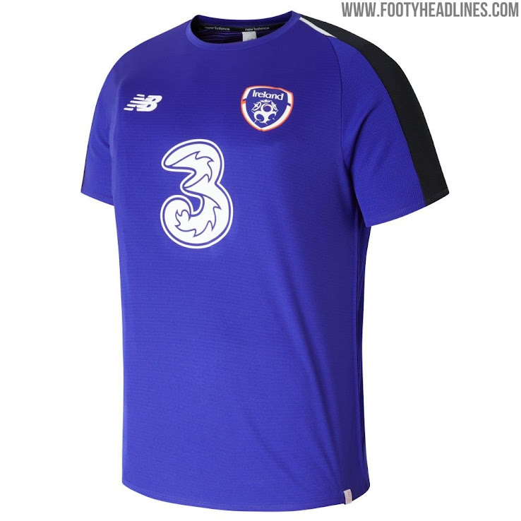 Das neue Irland-Trainingstrikot ist lila ("Lazarite") mit weißen Logos und schwarzen Details auf den Schultern und Armen. Ein großes "3"-Logo sitzt auf der Vorderseite.
