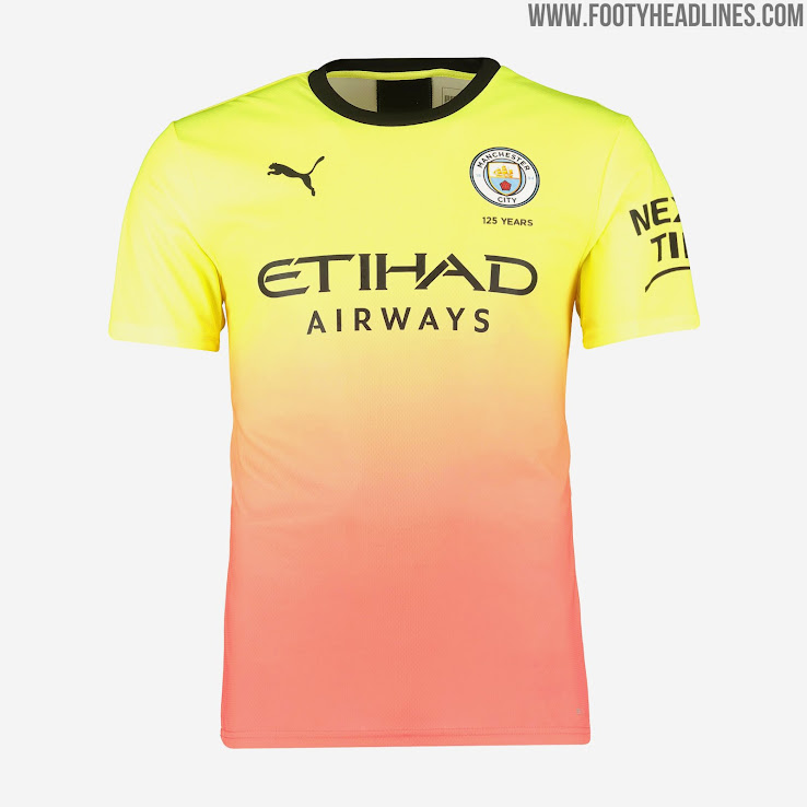Das Manchester City 2019-20 Trikot ist überwiegend gelb ("Fizzy Yellow") und geht nach unten zu einem pfirsichfarbenen Ton ("Georgia Peach") über, mit schwarzen Details. Ein Design, das ohne Zweifel Diskussionen auslösen wird.