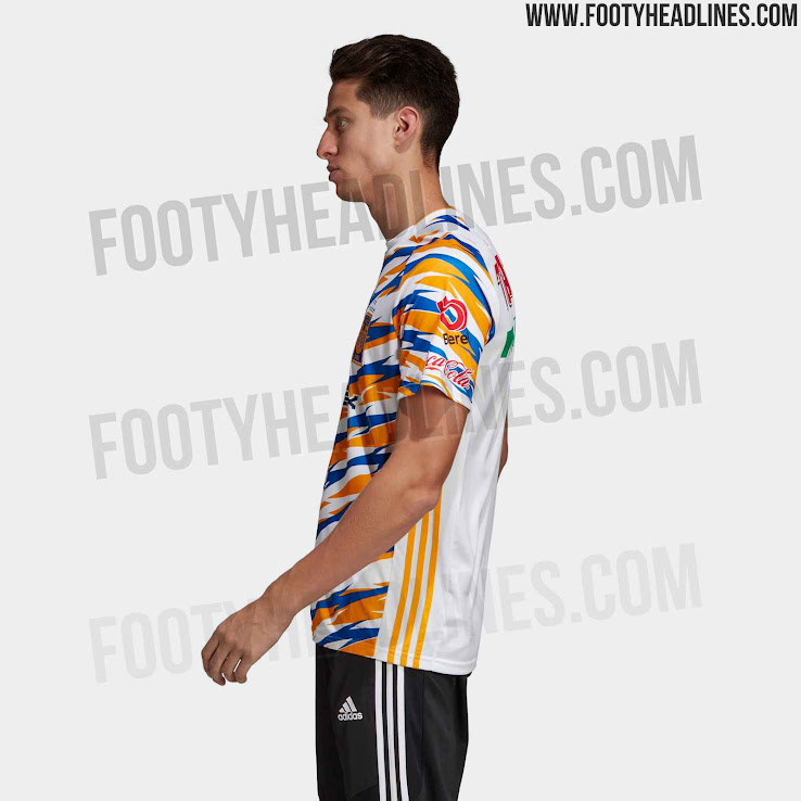 Das Tigres dritte Trikot 2019 ist weiß mit einem vom Tiger inspirierten Grafikdruck in blau und gelb.