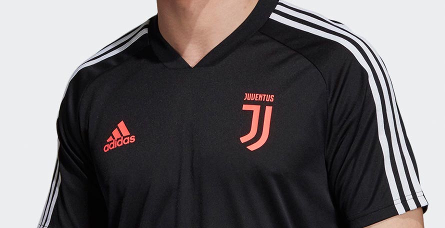 Das neue Adidas Juventus 19-20 Trainings-Trikot hat ein modernes Design und kombiniert Juventus berühmte Farben Schwarz und Weiß mit Pink für das Adidas-Logo. Es basiert auf dem Adidas 2019-20 Trainingstemplate mit seinen markanten Streifen am unteren Ende.