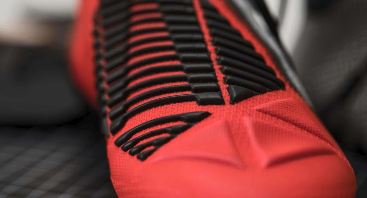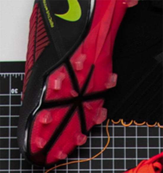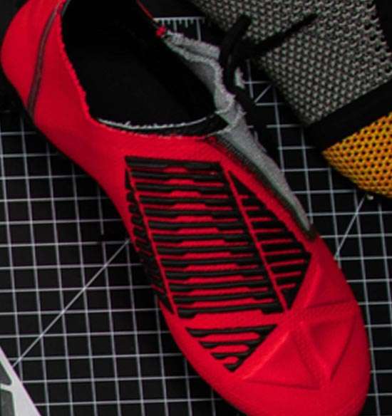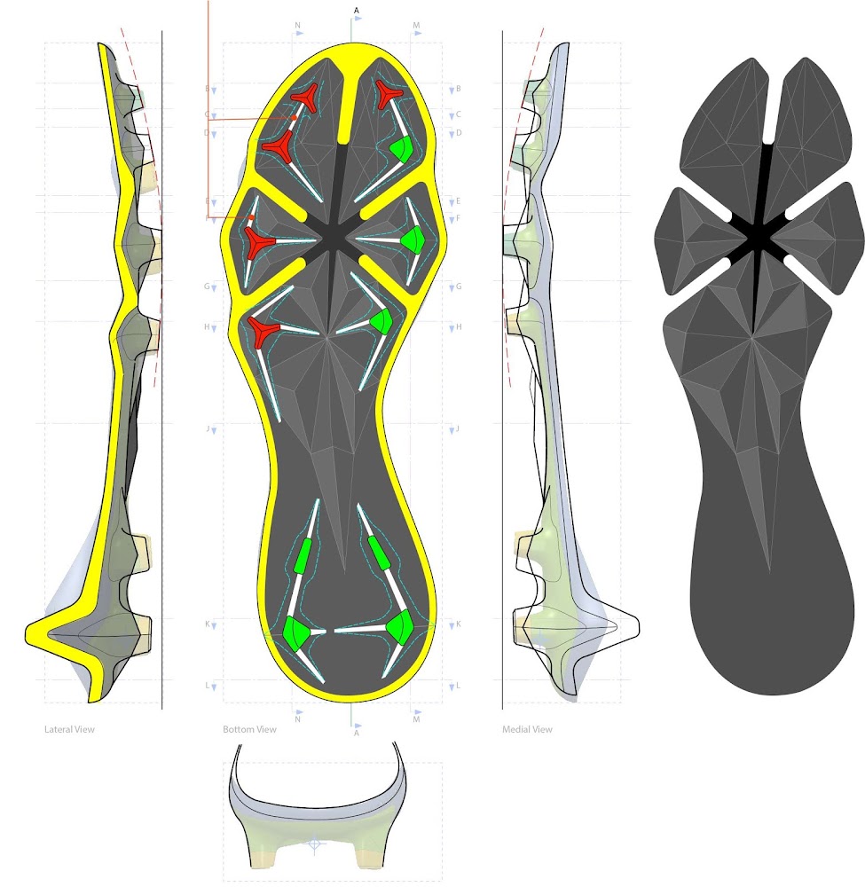Die Beständigkeit des Roboters erlaubte es ihnen, menschliche Variablen zu eliminieren und den Vorderfuß des Schuhs in eine Schusszone zu entwickeln. Die Testergebnisse des Roboterbeins wurden verwendet, um die Geometrie, Höhe und Winkel der Klingen auf der Strike Zone zu verfeinern, um die Leistung in vier Bereichen zu optimieren: Drehmoment, Höhe, Leistung und Genauigkeit.