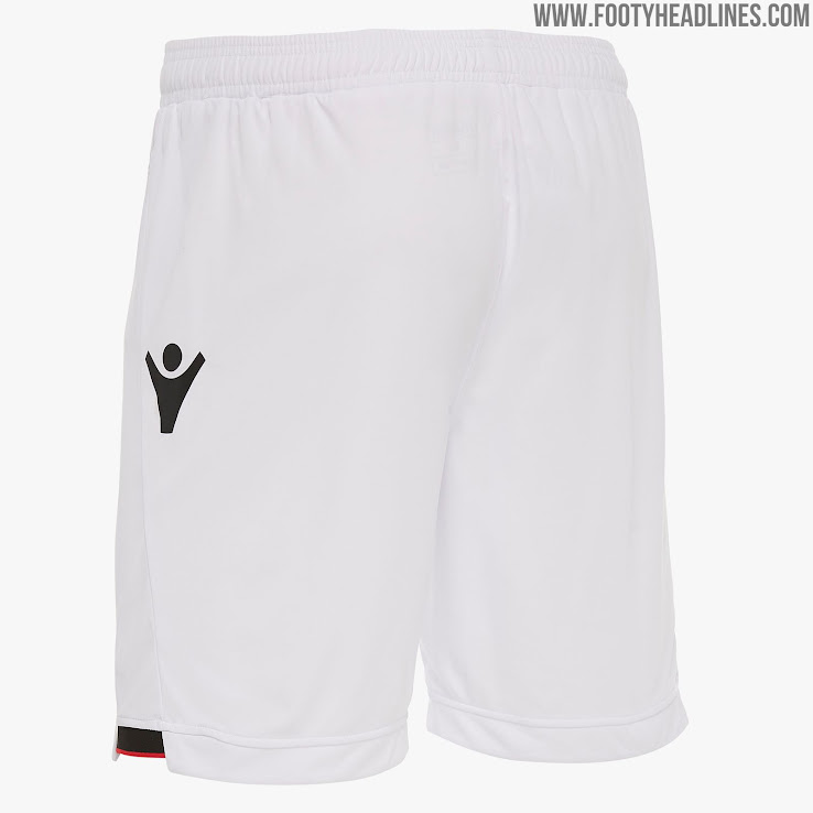 Schwarze Hosen und rote Stutzen runden das Trikot ab.