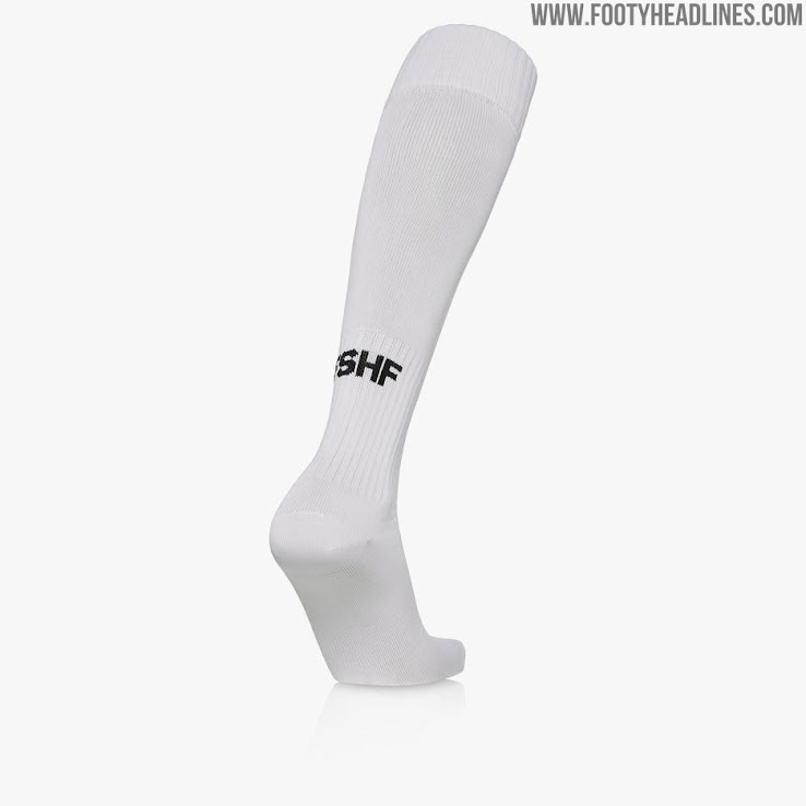 Weiße Hosen und Stutzen komplettieren das Trikot.