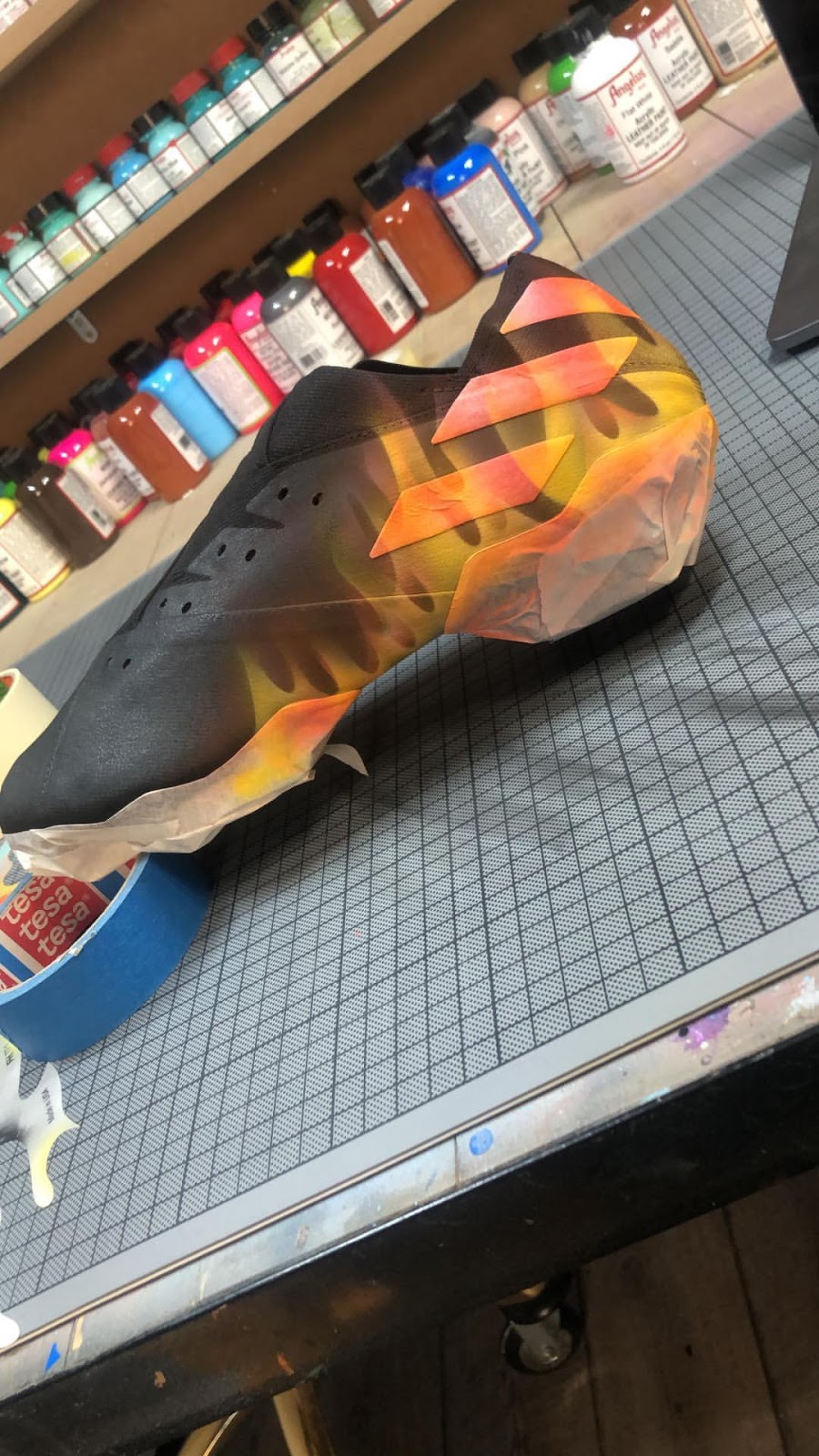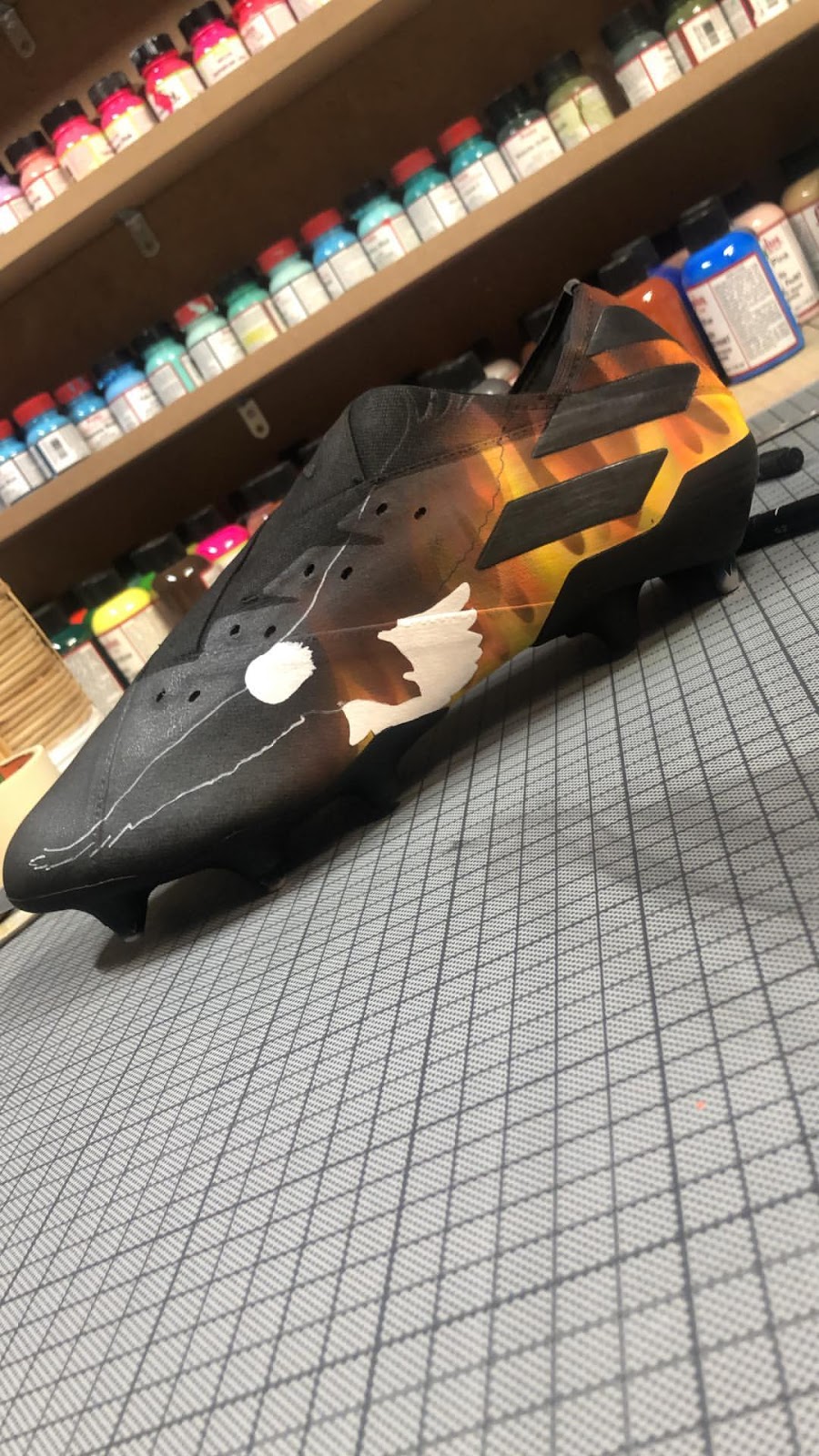 Update: Der französische Künstler @silni.art hat ein Paar Blackout Adidas Nemeziz 19.1 Fußballschuhe erhalten. Er hat eine feurige maßgeschneiderte Version des Schuhs erschaffen - diese wird logischerweise nie veröffentlicht.