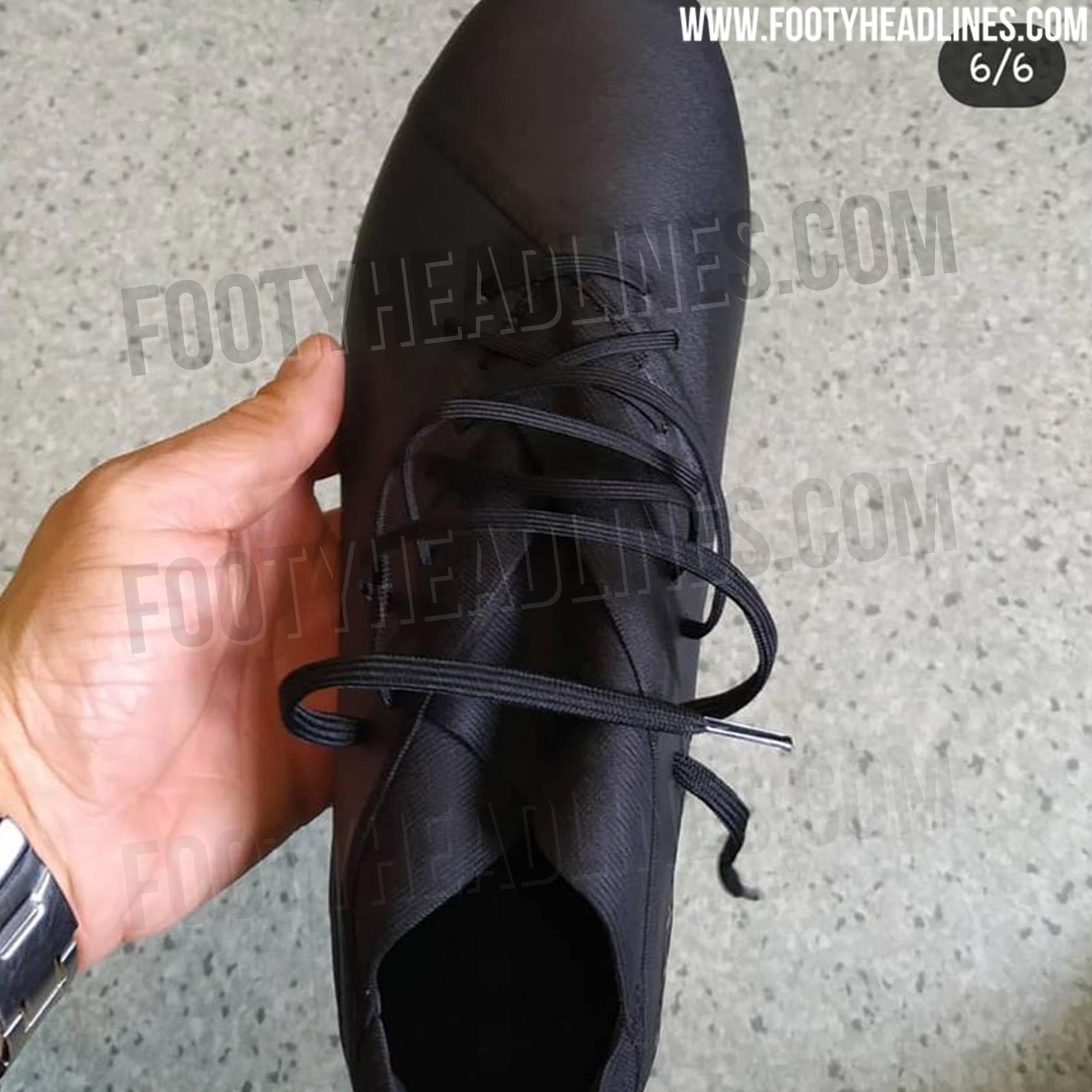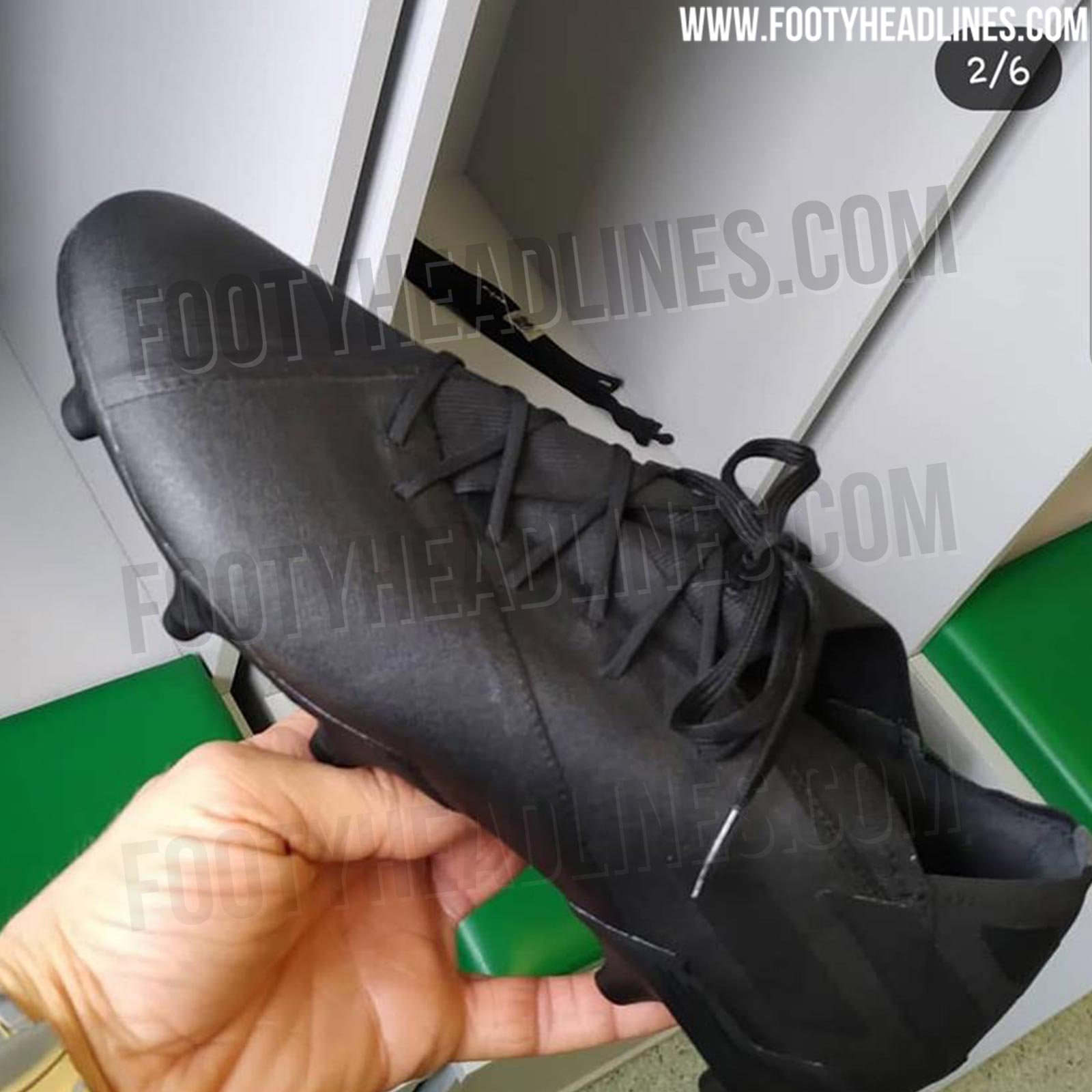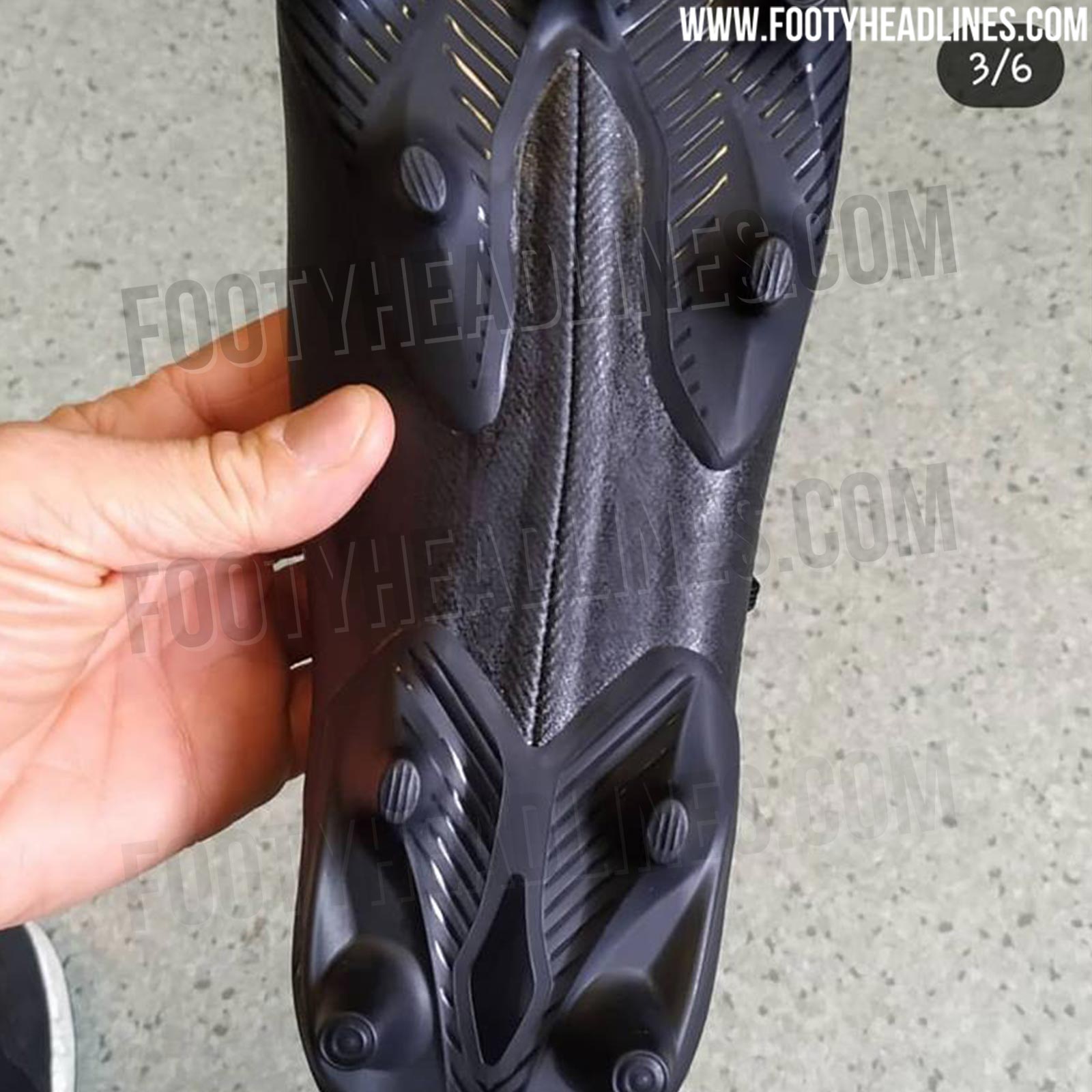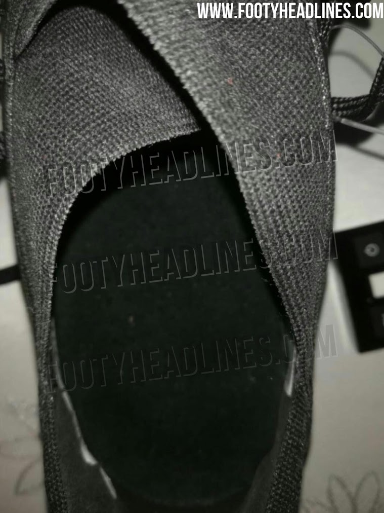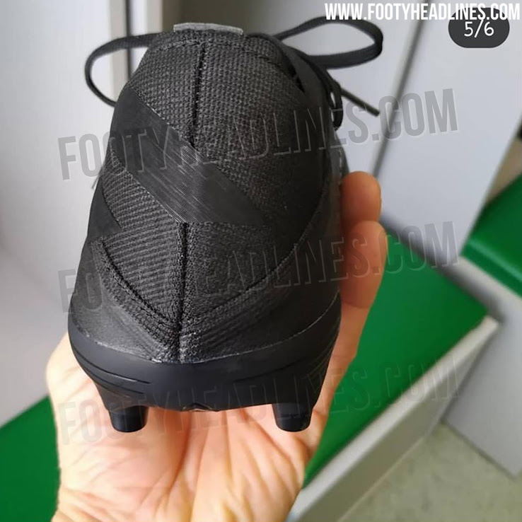 Dieser Prototyp des Adidas Nemeziz 19 ist völlig schwarz ohne Brandings. Im hinteren Bereich befindet sich der Schriftzug V, den wir bereits oft zuvor auf Adidas-Prototypen gesehen haben.