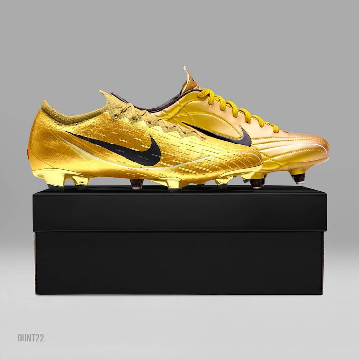 Der Fußballschuh-Enthusiast Gunt22 hat ein neues Fußballschuh-Konzept erschaffen. Anlässlich des 15-jährigen Jubiläums der allerersten goldenen Nike-Mercurial-Schuhe, die 2004 erschienen sind, hat er den Stil auf den Nike Mercurial Vapor 360 angewandt.