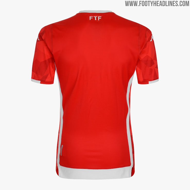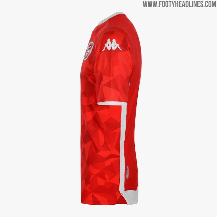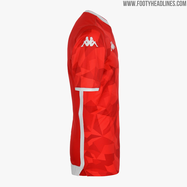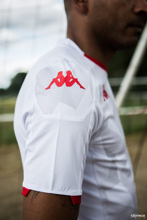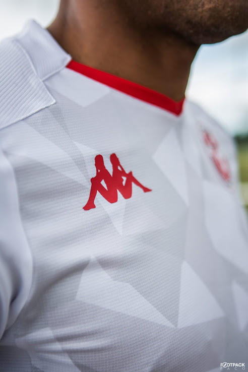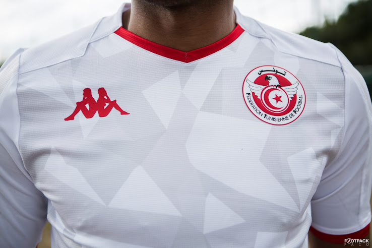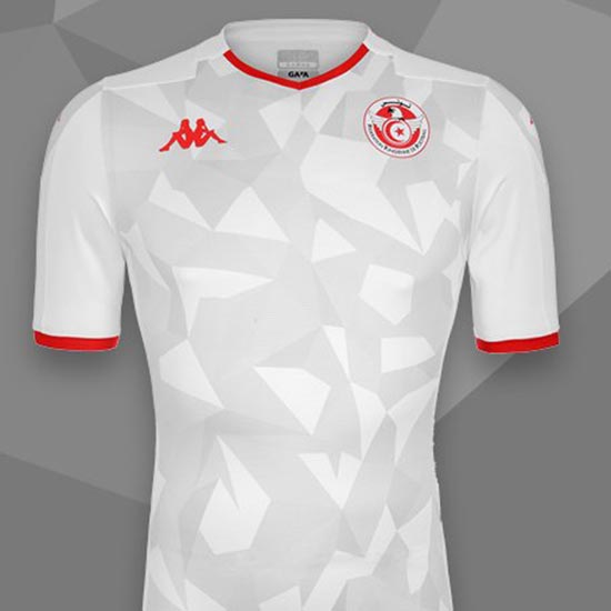 Das neue Kappa Tunesien 2019-2020 Trikot ist traditionell weiß und rot. Um moderne Akzente zu liefern, setzt das Trikot auf unterschiedliche abstrakte geometrische Formen in verschiedenen Grautönen.