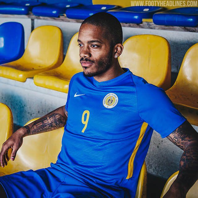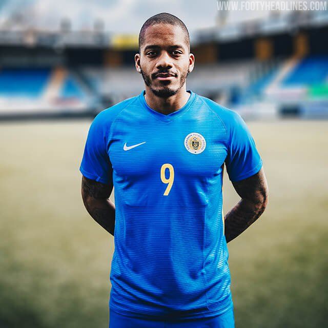 Auf Grundlage des Nike Tiempo Premier Templates ist das Curaçao-Trikot blau mit einem weißen Swoosh und einem dezenten sublimierten Grafikdruck. Die Seitenpanels des neuen Curaçao-Heimtrikots sind gelb, was die Farbe für den Trikotdruck ist.