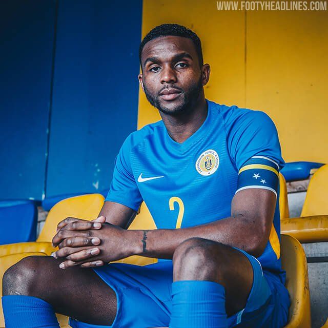 Auf Grundlage des Nike Tiempo Premier Templates ist das Curaçao-Trikot blau mit einem weißen Swoosh und einem dezenten sublimierten Grafikdruck. Die Seitenpanels des neuen Curaçao-Heimtrikots sind gelb, was die Farbe für den Trikotdruck ist.