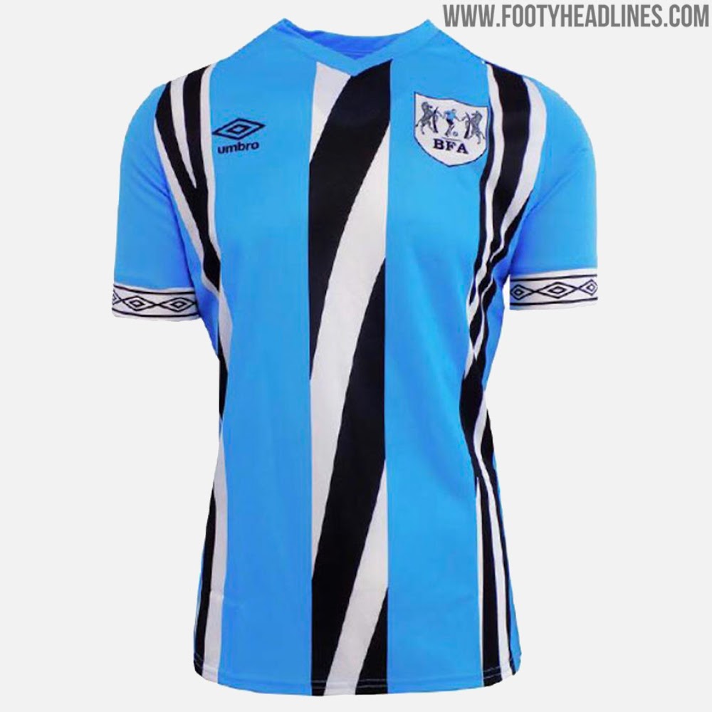 Das erste neue Umbro Botswana 19-20 Trikot kombiniert die traditionelle himmelblaue Farbe des Landes mit einem einzigartigen schwarz-weißen Zebrastreifen-Design.