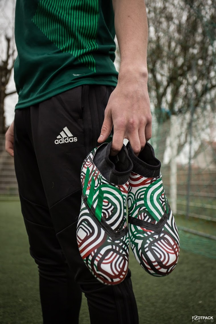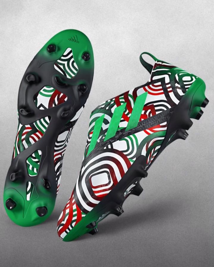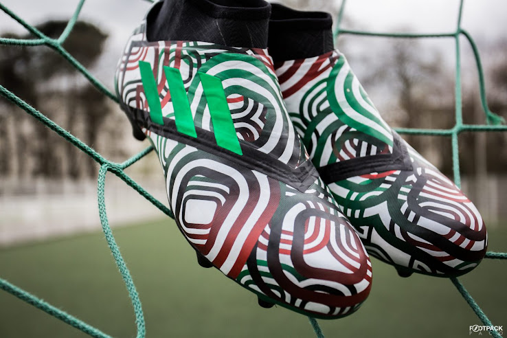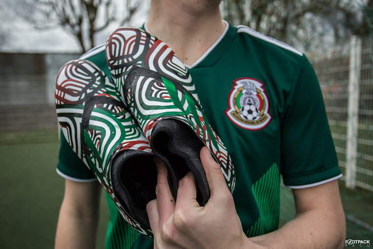Der bereits 58. Skin des Adidas Glitch Fußballschuhs wurde von der WM 1986 in Mexiko und insbesondere einem modischen WM-Poster von 1986 inspiriert.