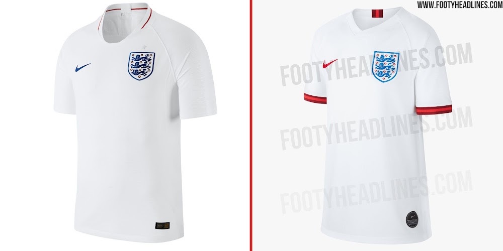 Das Nike England WM 2018 Trikot basiert auf dem Nike Vapor Knit 2018 Template. Das Nike England Frauen-Trikot basiert auf dem Nike 2019 Frauentemplate.