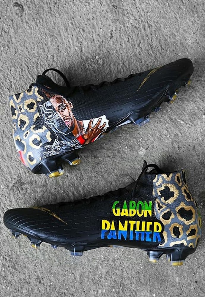 Arsenal-Stürmer Pierre-Emerick Aubameyang hat den Designer SWithADot beauftragt, ein Paar der "Black Lux" Nike Mercurial Superfly VI Fußballschuhe für ihn anzupassen. Das Ergebnis ist ein außergewöhnlicher Schuh, der als "Gabon Panther"-Edition bezeichnet wird.