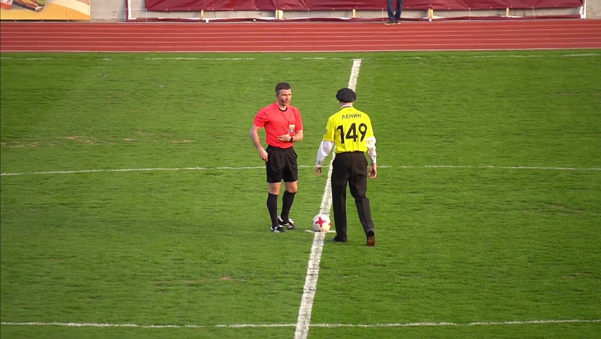 Das Trikot wurde gestern im Spiel getragen. Ein als Lenin verkleideter Mann führte einen feierlichen Anstoß durch.