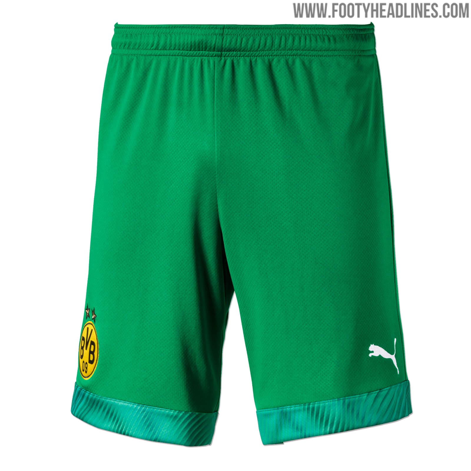 Hosen und Stutzen in der jeweils gleichen Farbe komplettieren die Dortmund Torwart-Trikots 19/20.