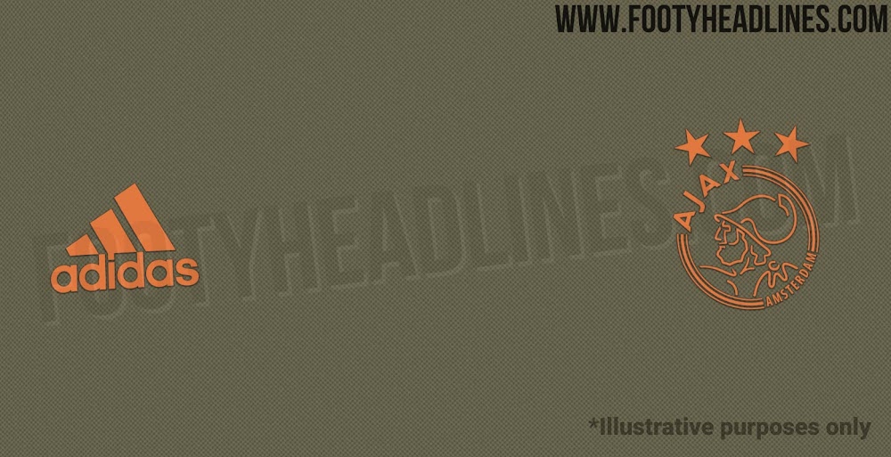 Das neue Ajax 2019-2020 Trikot wird eine noch nie dagewesene Farbkombination aufweisen. Es wird hauptsächlich Khaki mit orangefarbenen Details sein.