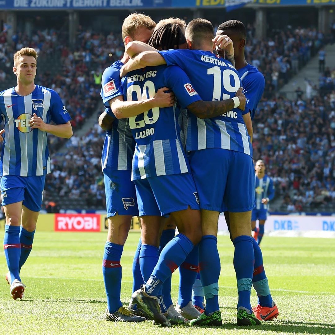 Hertha BSC trug ein Regenbogen-Sponsorenlogo auf dem Heimtrikot, nachdem das "Vielfalts-Trikot" aufgrund von Fanbeschwerden verworfen wurde - auch wenn kein Trikot 19/20 Premiere feierte.