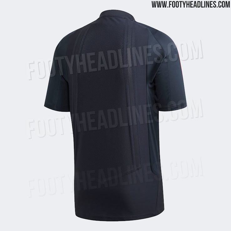 Das Adidas Bayern München CL Trainings-Trikot 2019/20 wurde vom Ausweichtrikot des Klubs (UEFA Champions League Auswärts) inspiriert und ist dunkelblau / rot.