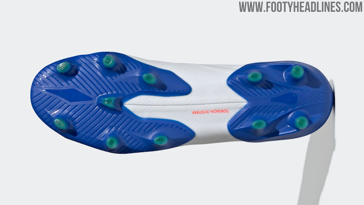 Diese Adidas Nemeziz Messi 2019-2020 Schuhe haben ein bemerkenswertes Design und ein weißes Obermaterial, rote Drei Streifen, eine blaue Außensohle und Gelb, das für die Enden der Stollen und den inneren Teil verwendet wird. Es ist eine Farbkombination, die nicht elegant, aber erfrischend ist. Diese Farbkombo wurde von Barcas drei Trikot-Farben (Blau / Rot / Gelb) inspiriert.