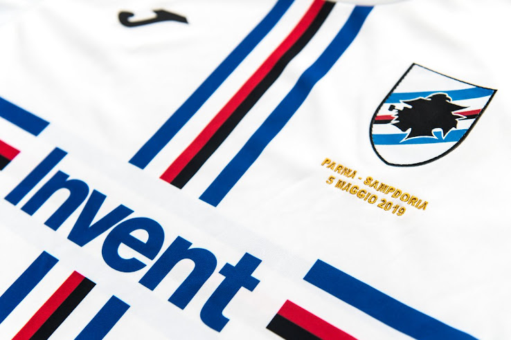Das von den Parma-Spielern getragene Blucerchiati-Shirt wird von Errea produziert und in den Farben gelb und blau veredelt. Es gibt viele besondere Details, wobei das klassische Kreuz von St. Georg durch das Wappen des Herzogtums Parma ersetzt wird und auf der Rückseite der Trikots ein Dreieck mit dem Parma-Logo wie bei den aktuellen Parma-Trikots zu sehen ist. Die Buchstaben auf der Seite lauten Parma Calcio vs Sampdoria, 5. Mai 2019.