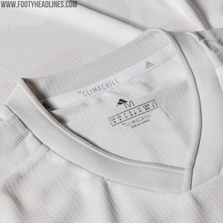 Das Juventus 2019-20 Trikot ist überwiegend weiß mit Drei Streifen in "Raw White" und Logos in "High-Red Red". Das Shirt zeichnet sich durch ein dezentes Camouflage-Muster auf der Vorderseite, Rückseite und den Ärmeln aus.