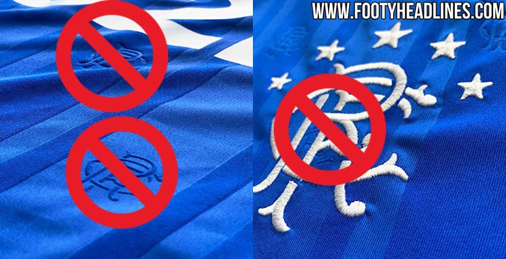 Geprägte Rangers-Wappen von Hummel Rangers 19-20 Trikot nach UEFA-Regularien nicht erlaubt