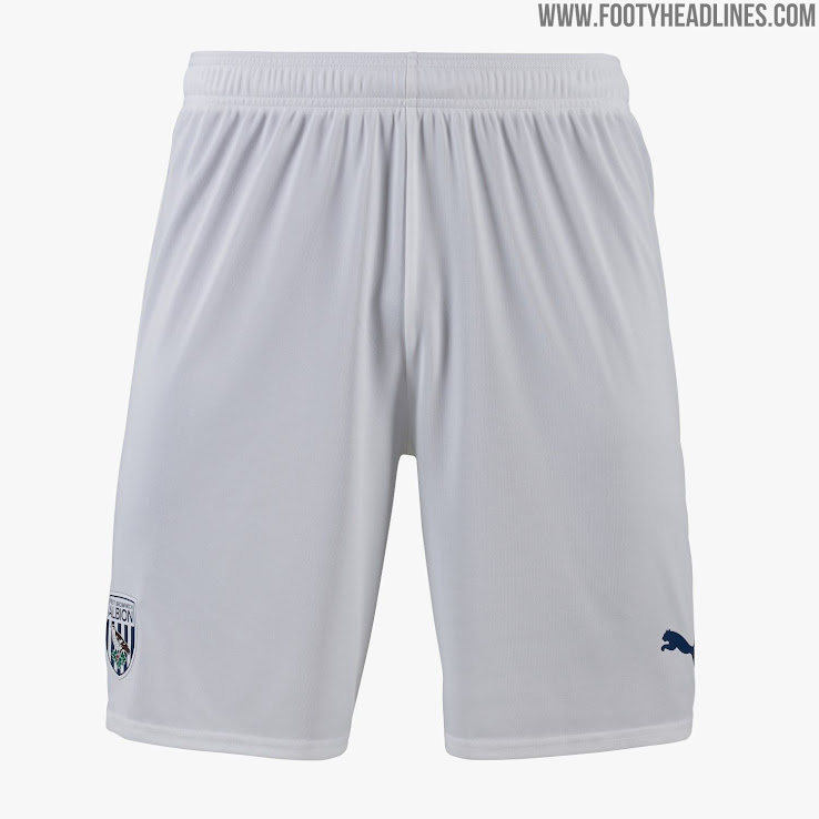 Eine einfache weiße Hose und geringelte Stutzen komplettieren das neue WBA-Heimtrikot von Puma.