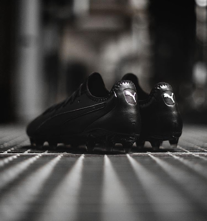 Die allererste Farbvariante der Puma King Platinum 2019 Schuhe besticht durch ein unauffälliges Blackout-Design. Die Zunge setzt auf den King-Schriftzug in Weiß, die Schnürsenkel weisen subtile weiße Details auf, während die Außensohle einen atemberaubenden Effekt hat - es gibt keine bunten Details.