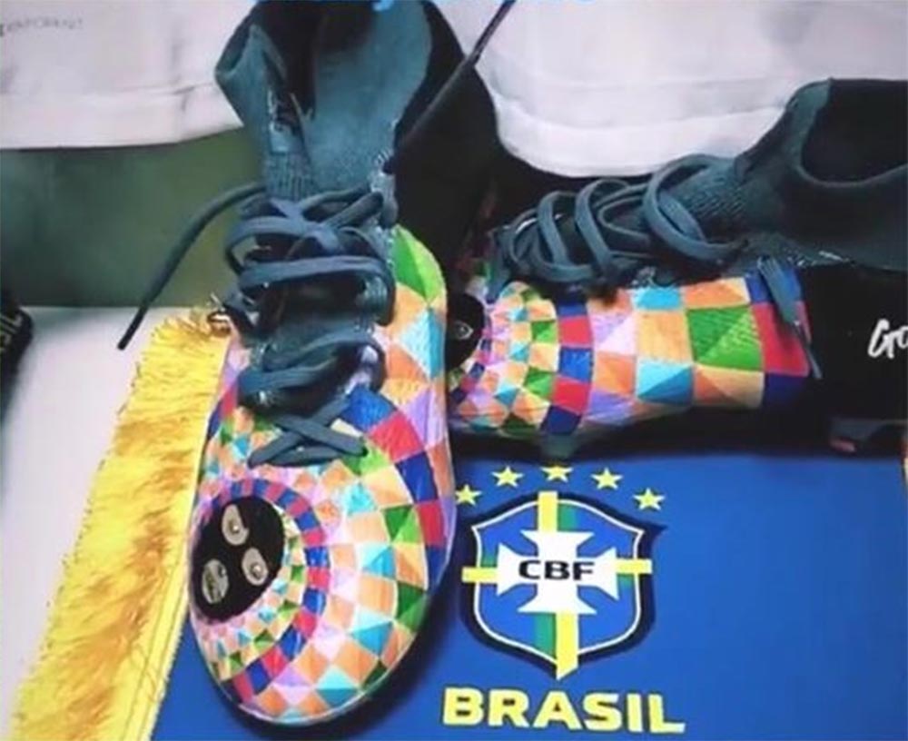 Tatsächlich zeigt ein genauerer Blick, dass die maßgeschneiderten Dani Alves Schuhe das Logo von OSGEMEOS (auch bekannt als Os Gemeos oder Os Gêmeos, portugiesisch für Die Zwillinge) tragen. OSGEMEOS sind Graffiti und Straßenkünstler, die 1974 in São Paulo, Brasilien, geboren wurden und die eineigen Zwillingsbrüder Otavio Pandolfo und Gustavo Pandolfo sind. OSGEMEOS begann 1987 mit Graffiti und wurde allmählich zu einem wichtigen Einflussfaktor in der lokalen Szene, der den brasilianischen Stil prägte.