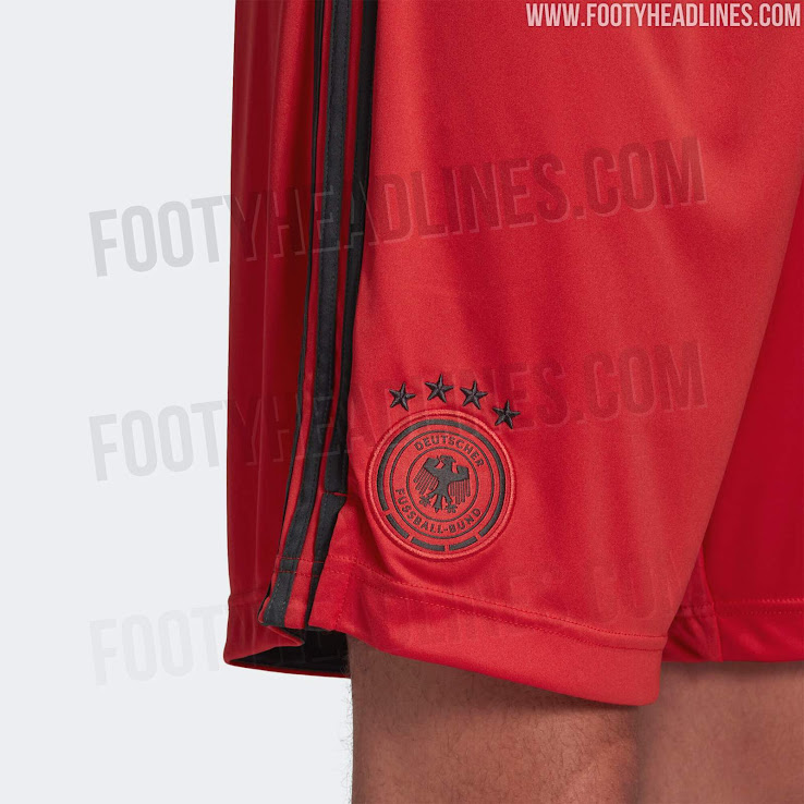 Das neue Deutschland EM 2020 Torwart-Trikot führt ein auffälliges Design in Rot und Schwarz ein. Alle Logos auf dem neuen DFB EM 2020 Torwart-Fußballtrikot sind einfarbig schwarz.