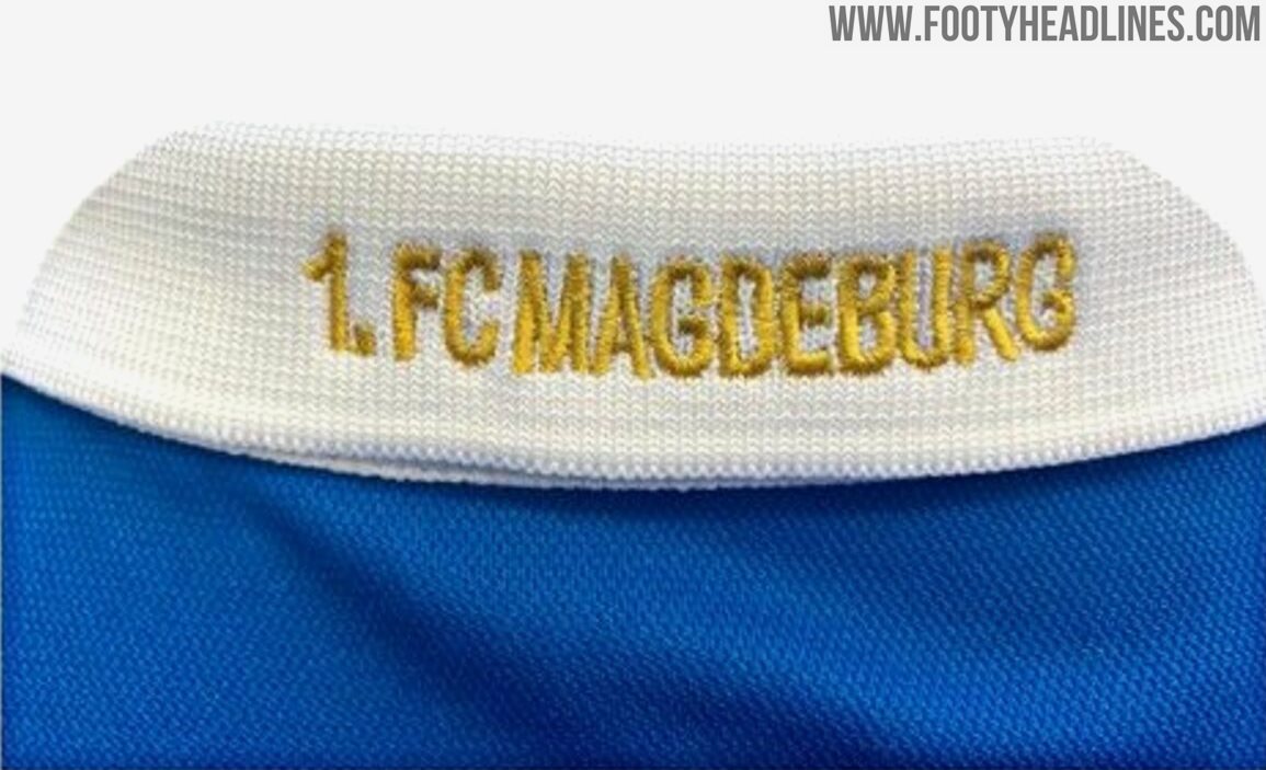 Auf dem neuen Magdeburg 2019-2020 Trikot ist der Teamname auf die obere Rückseite in Gold gedruckt und erneut auf dem oberen Rücken über den Nummern steht der Teamname.