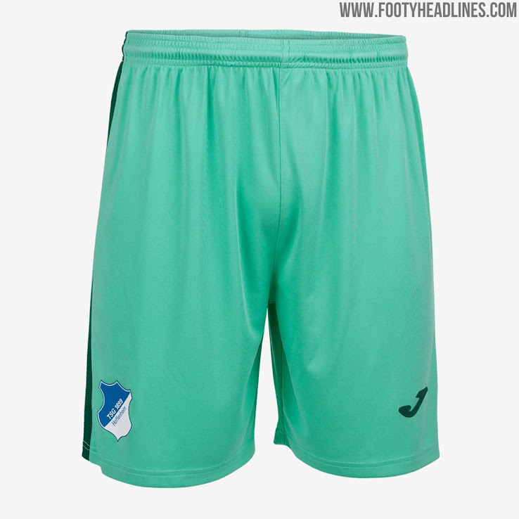 Das Hoffenheim 19-20 Trikot wird mit minzgrünen Hosen und Stutzen kombiniert.