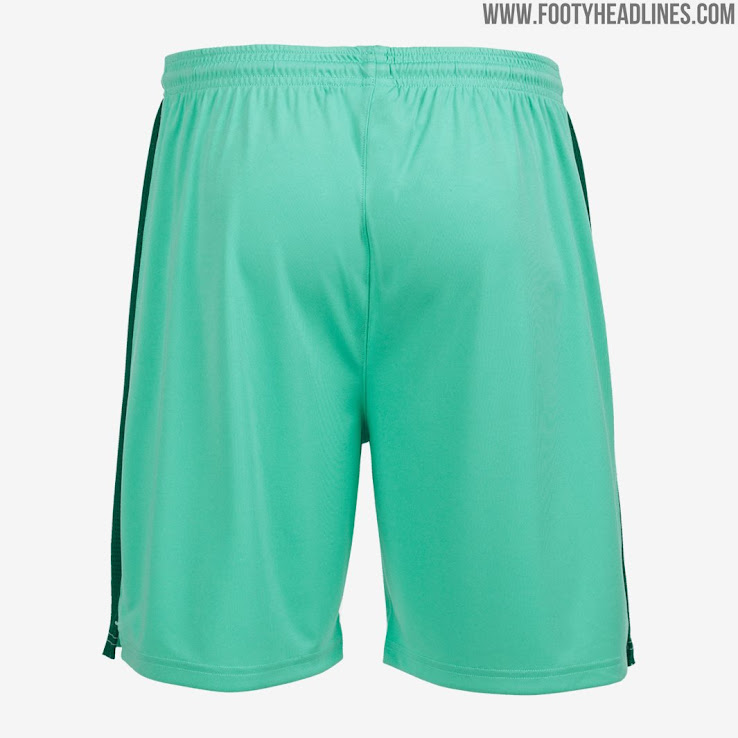Ein dunkelgrünes Designdetail verläuft am unteren Ende der Ärmel bis zu jeder Seite des Trikots, wo es am Saum endet. Ansonsten umgibt ein dunkelgrünes Detail den schlichten Rundkragen, womit die einfache Optik abgerundet wird.
