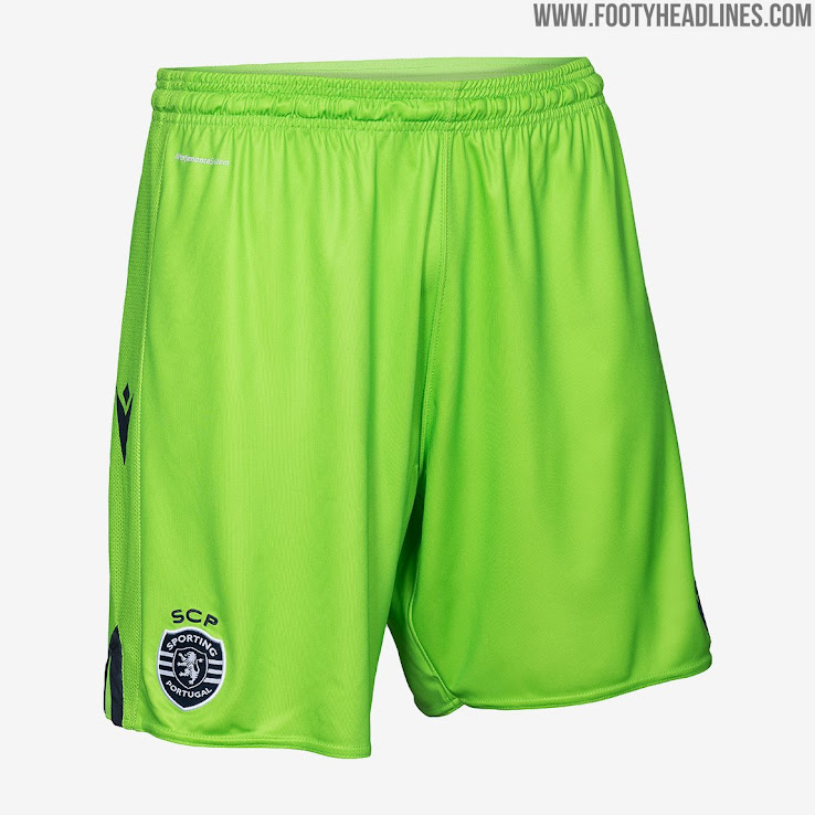 Limettengrün wird als Hauptfarbe für Sportings neues Torwart-Auswärtstrikot verwendet, das weiße Details und schwarze Logos aufweist.