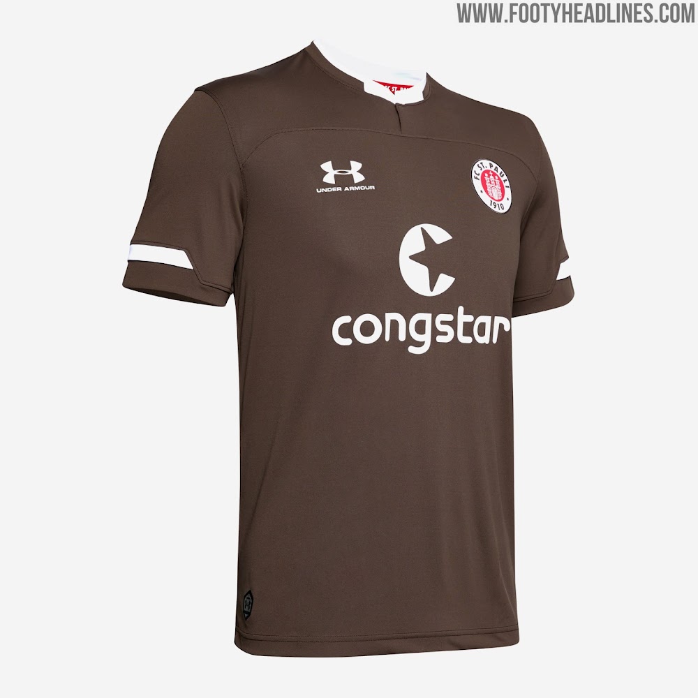 Das neue St. Pauli 2019-20 Trikot besticht durch die traditionelle braune Grundfarbe des Klubs in einem insgesamt schlichten und einfachen Design ohne Grafik und nur wenigen weißen Details an Ärmeln und Kragen. Das Shirt basiert auf der neuen UA-Vorlage.