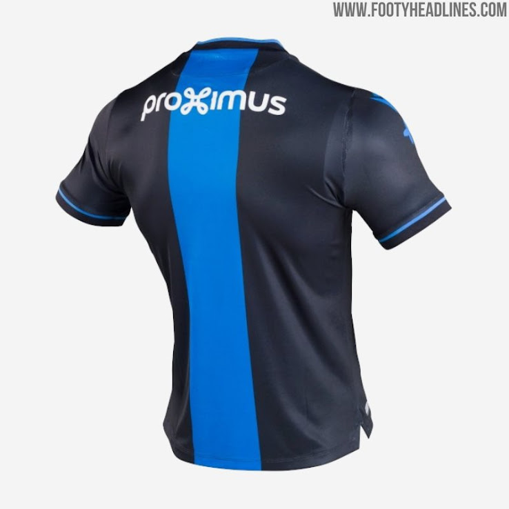 Es ist eine ungewöhnliche Optik: Das neue Club Brügge Heimtrikot weist einen einzigen blauen Mittelstreifen auf schwarzer Grundlage auf.