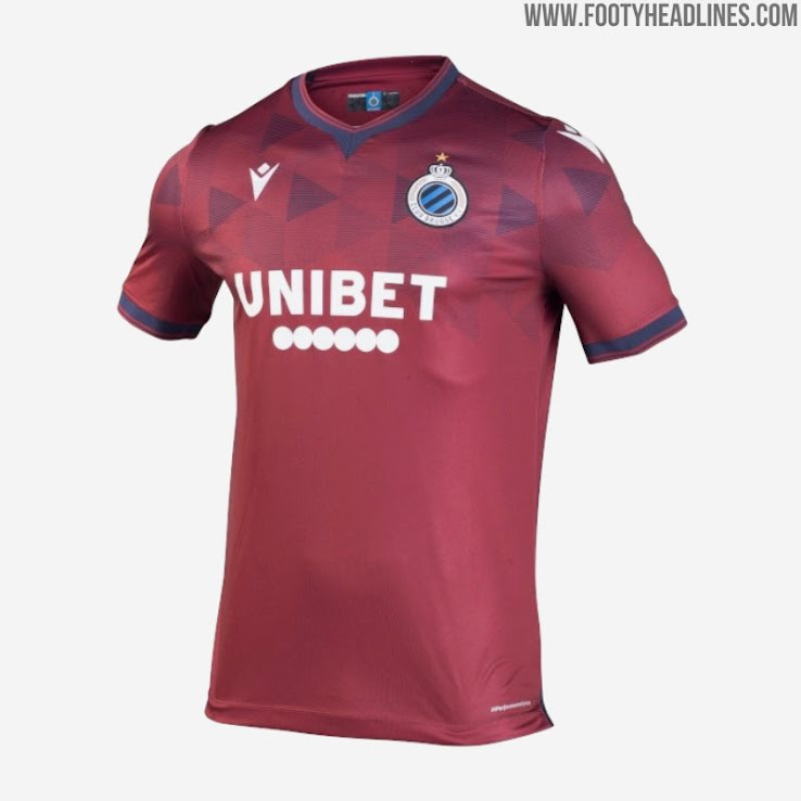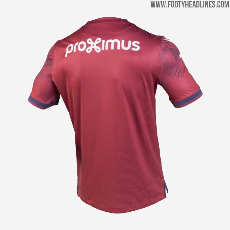 Brügges neues Auswärtstrikot kombiniert eine kastanienbraune Grundlage mit dunkelblauen Details und ist ein Hingucker.