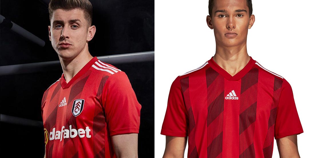 Das Adidas Fulham 19-20 Trikot "stellt eine moderne Interpretation der rot-schwarz gestreiften Designs dar, wie sie auf früheren Fulham-Shirts zu sehen sind", so der Club. Es ist jedoch nicht für Fulham maßgeschneidert, sondern lediglich das neue rote Adidas Striped 19 Teamwear-Trikot mit Fulhams Wappen und dem Dafabet-Sponsorenlogo.