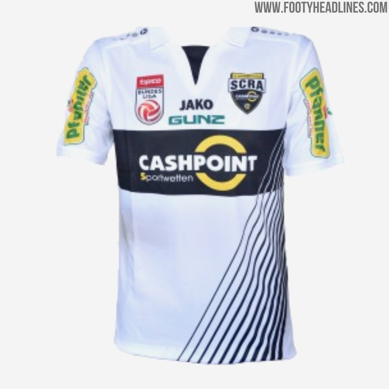 Das zweite neue Altach 2019-20 Trikot, das auf der gleichen Vorlage basiert, integriert sowohl Schwarz als auch Weiß.