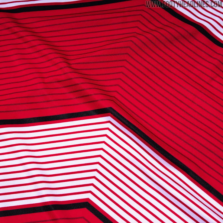Das Arminia Bielefeld 19-20 Trikot basiert auf dem selben Template und folgt der Inspiration noch genauer, indem es überwiegend rot mit der Grafik in Schwarz und Weiß ist.