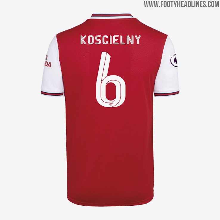 Im Gegensatz zur Schriftart der letzten Saison und auch recht interessant ist, dass die Arsenal 2019-20 Schriftart auf dem Heimtrikot nur weiß und ohne dunkelblaue Details ist.