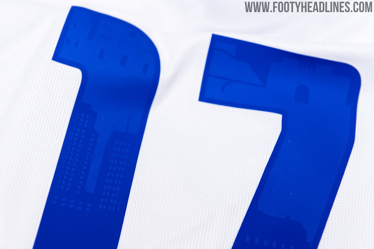 Das neue Sampdoria-Fußballtrikot ist überwiegend weiß und weist eine auffällige Grafik in den klassischen Vereinsfarben Blau, Weiß, Rot und Schwarz auf der unteren Vorderseite auf. Die Farben wiederholen sich an den Manschetten und um die Rückseite des Kragens herum, während blaue Felder vorne am Kragen, auf den Schultern und unter den Armen zu sehen sind. Kurz gesagt, es ist viel los, und definitiv zu viel für ein Trikot.